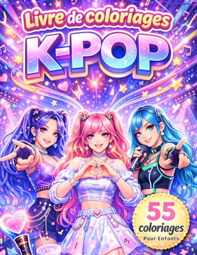 Livre de Coloriages K-POP Pour Enfants: Cahier de coloriage K-POP avec 55 dessins uniques à colorier, activité créative sans écran, univers fun et ... danse, looks tendance, idée cadeau fille