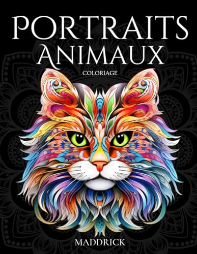 Portraits Animaux: Livre de coloriage incluant des animaux ayant des motifs complexes de fleurs et de mandalas. Activité de relaxation pour coloriste de tout niveau.